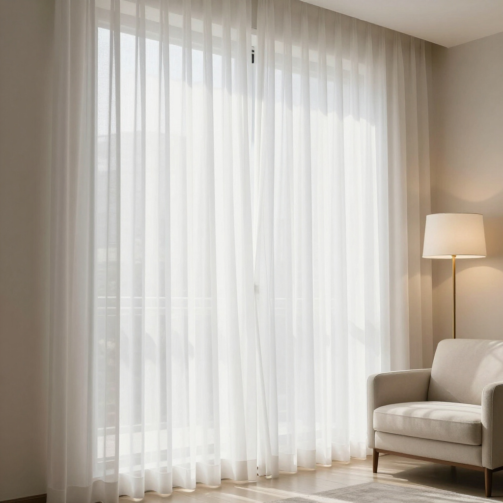 Soft, light-filtering sheers installed with professional tracks for a refined and airy contemporary atmosphere.